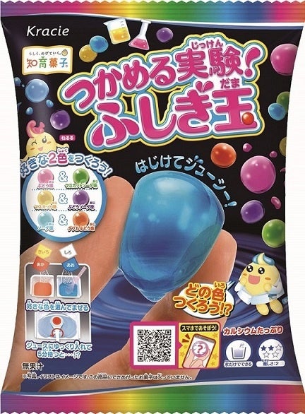 粉と水を混ぜた液体で、手でつかめる「ふしぎ玉」が簡単に作れる不思議な実験お菓子です。
