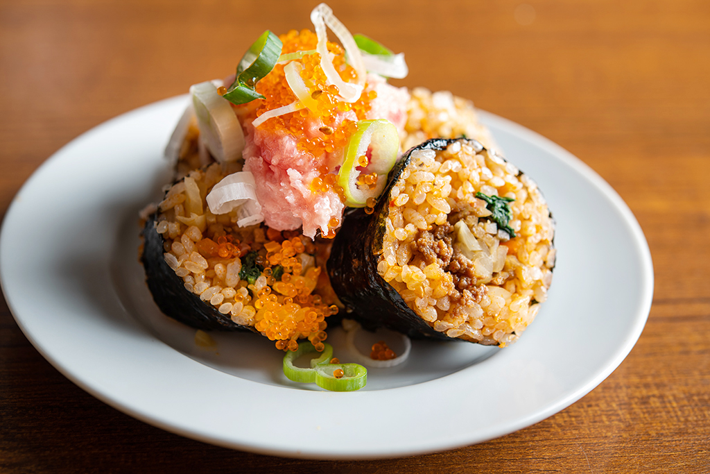 「ラッキーソウル」が、密かに強力なオリジナリティーを発揮しているのが「キンパ」。キンが海苔を、パがご飯を表す、韓国の海苔巻は、日本でも今やすっかりお馴染みの存在となっています。ごま油の風味が、おつまみとしても〆としても存在感を発揮するこのカテゴリに「ラッキーソウル」は3種をラインナップ。寿司ダネでも大人気のねぎとろを使った日本×韓国コラボの決定版 「ねぎとろユッケキンパ(580円)」、甘辛く炒めた牛肉と野菜がご飯と絶妙のマッチングを見せる「プルコギキンパ(580円)」、まさかのイタリアン風!?塩気のある生ハムにとろ〜りチーズが絡み合う「生ハムチーズキンパ(580円)」。思わず全種類制覇したくなる顔ぶれです。