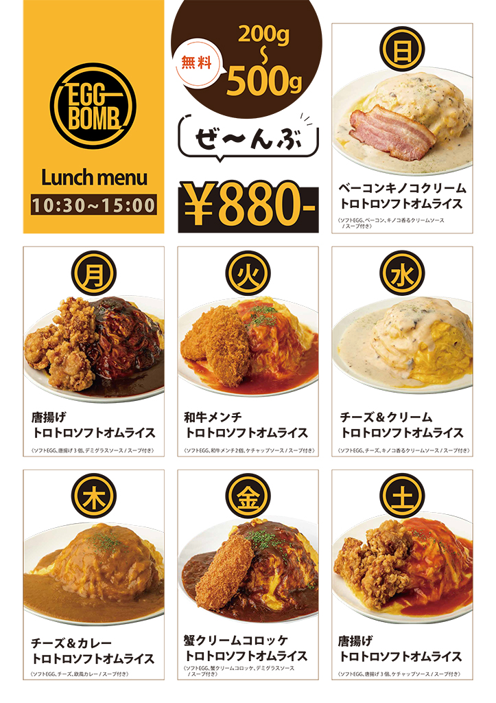 EGG BOMB 1kg オムライス 1,800円