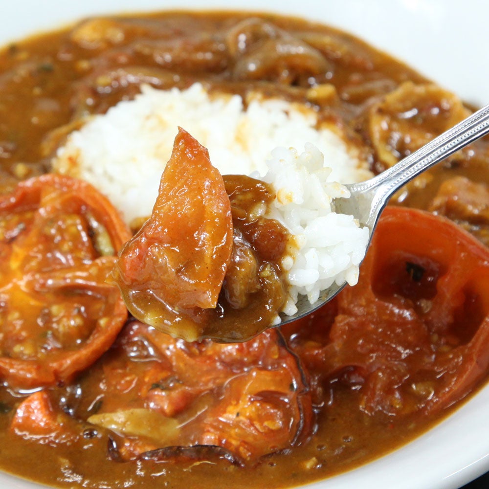 トマトラーメンに、オンラインショップでしか味わえない特製トマト料理をお付けしました。メインとなるラーメンやカレーはもちろん、カポナータや水餃子のようなサイドメニューもトマト尽くし。トマトを心ゆくまで堪能できる、トマト好きにはたまらないセットです。