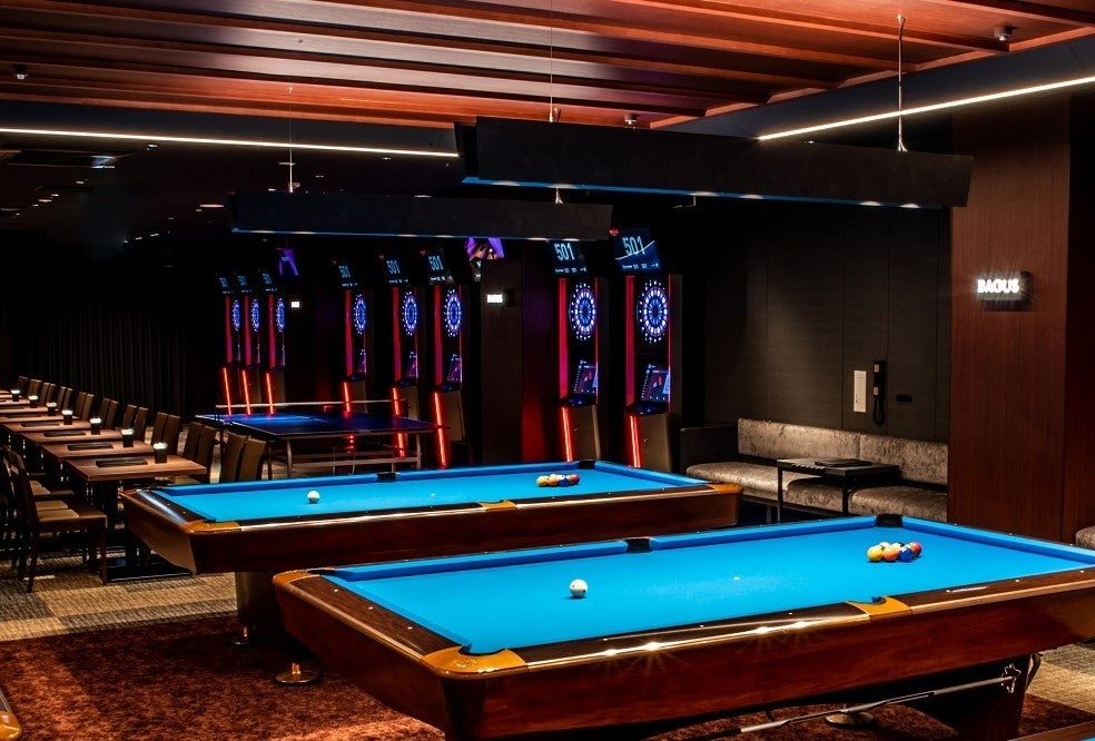 ビリヤードにおいては日本最大級の保有台数を誇り、高級感溢れる雰囲気や内装で、それまでの暗く狭いビリヤードのイメージを一新いたしました。ダーツにおいてもダーツブランド「ダーツライブ」「フェニックス」の設置台数は日本トップクラスとなり、常に最新鋭の機種を揃えイベントも多数行っております。ビリヤード、ダーツに加え、卓球やシミュレーションゴルフ、カラオケも楽しめるハイブリッドな遊びの空間を実現しております。