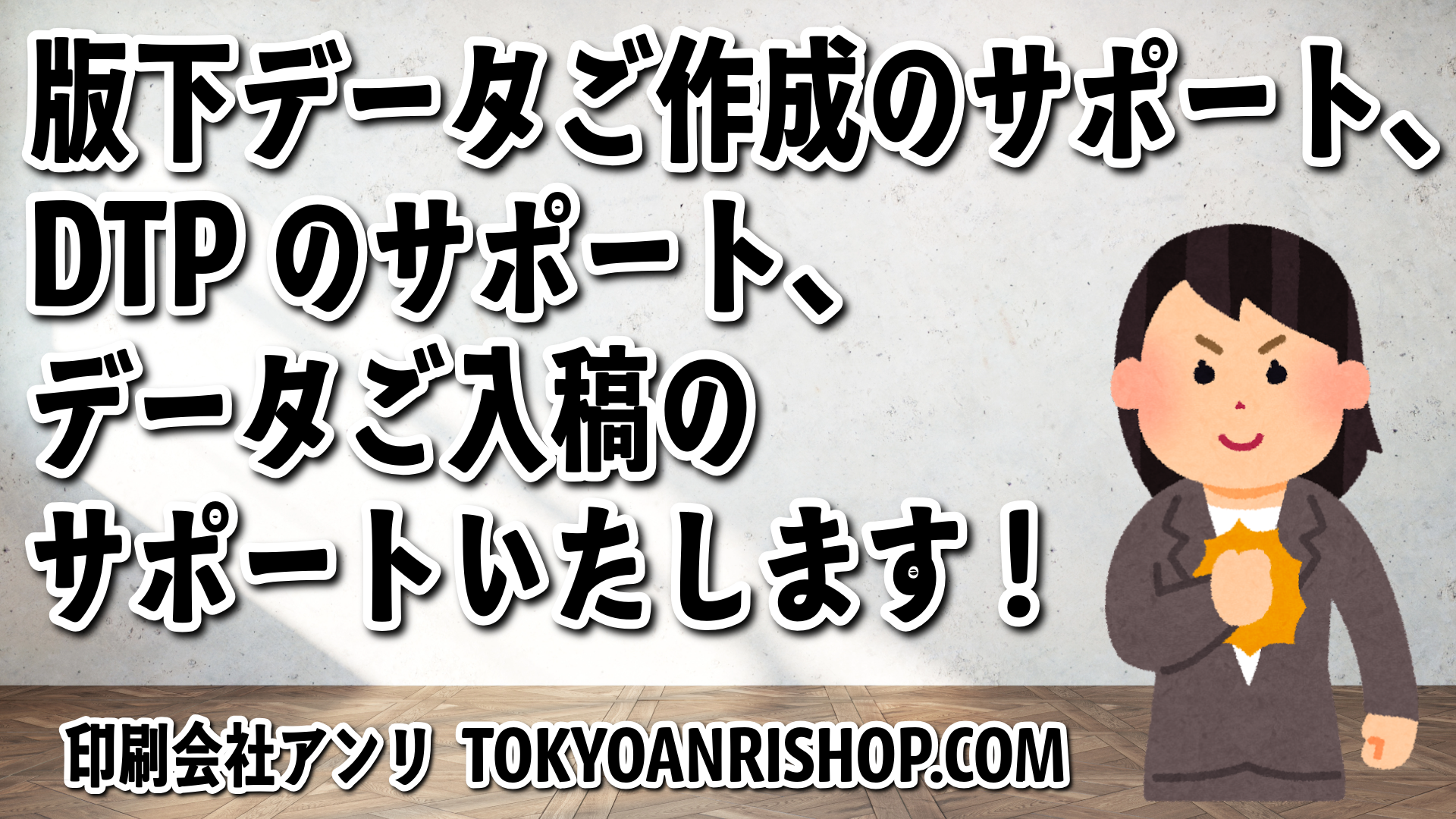 版下データご作成のサポート、DTPサポート、データご入稿のサポートいたします! 印刷物のデザイン制作も可能です。ご不明点お気軽にお問い合わせください! 「データ作成方法」「入稿方法」「印刷」「加工」「Illustrator」「Photoshop」「.ai」「.psd」「印刷技術」「印刷方法」「サイズ」「寸法」「テンプレート」「フォントのアウトライン化」「画像解像度」「リッチブラックとは」「特色とは」「トリムマークとトンボは何が違うの」「アートボードサイズ」「塗り足し」「CMYK(シアン・マゼンタ・イエロー・ブラック」「リンクがよいのか埋め込みがよいのか」ご不明点、お気軽にお問い合わせください!