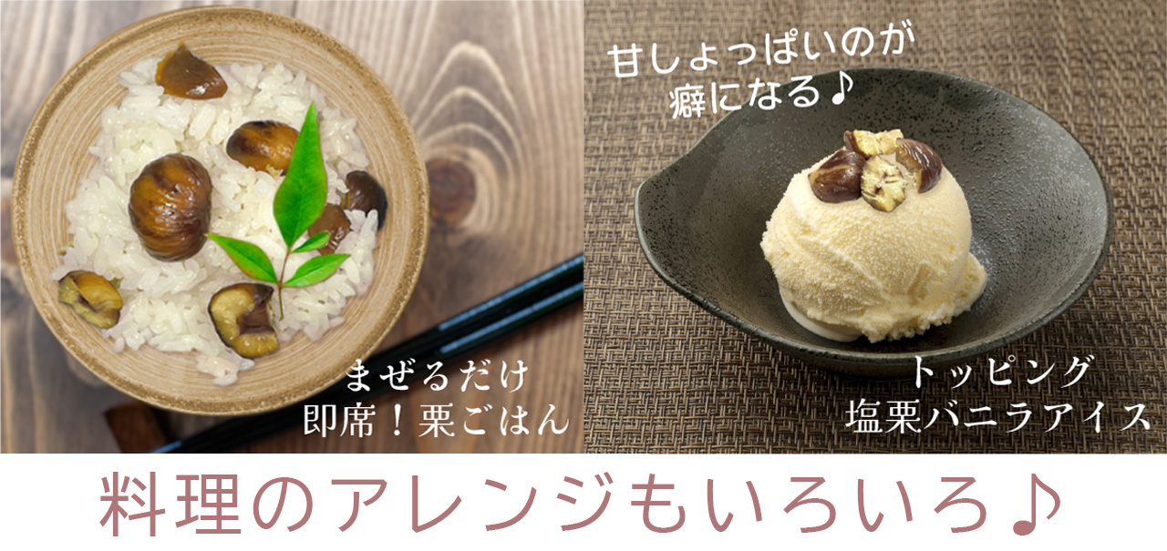 「おつまみ塩甘栗」は、そのまま楽しむだけでなく、炊き立てご飯に混ぜて即席の栗ごはんに。またサラダやバニラアイスのトッピングとしてもお使いいただけます。ぜひ、新しい食体験を楽しんでください!