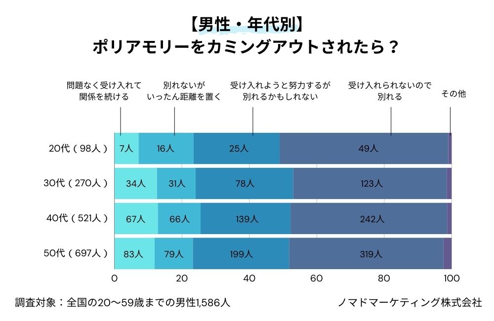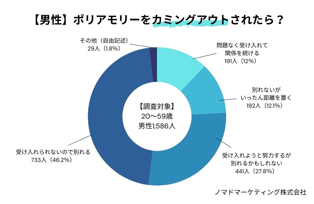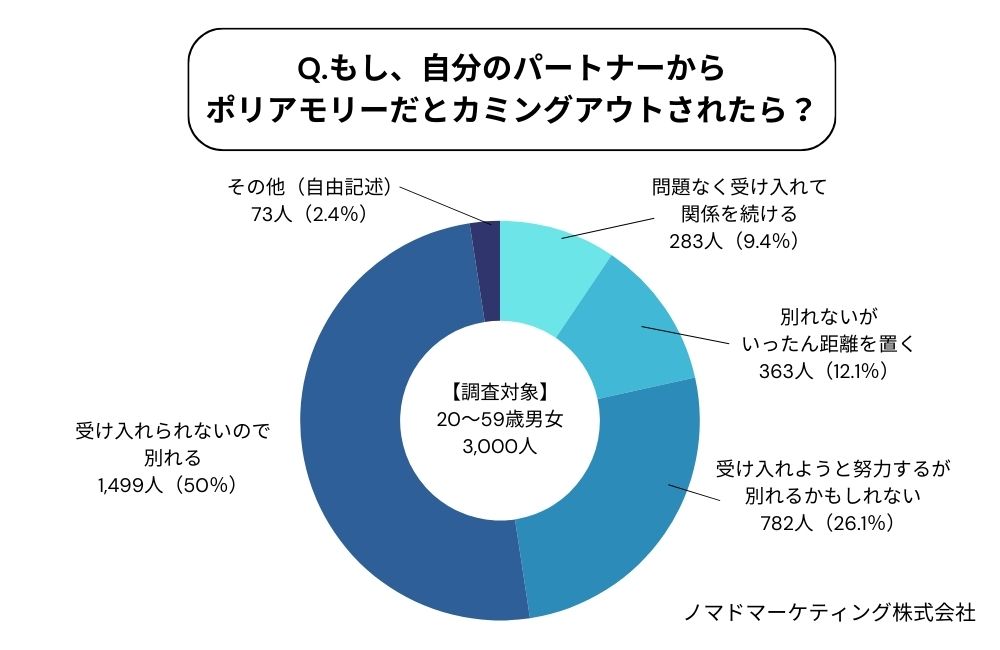 もし、自分のパートナーから「ポリアモリーだ」とカミングアウトされたらどうするかを聞きました。