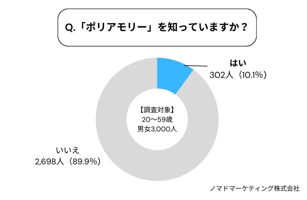 既婚者向けマッチングアプリ「既婚者クラブ」のユーザーを対象にノマドマーケティング株式会社(東京都渋谷区)が、20歳~59歳までの男女3,000人を対象に「ポリアモリーに関する意識調査」を実施しました。