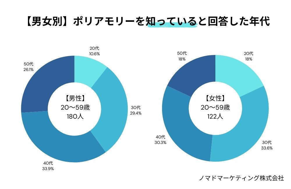 男女別で大きな差は見られなかったものの、ポリアモリーを知っているのは男性のほうが多い結果になりました。