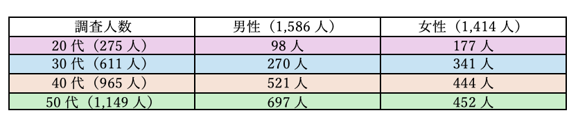 有効回答数:3,000(男性:1,586人・女性:1,414人)