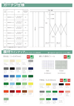 - 防炎品(例:ホワイト、グレー、ブラック)