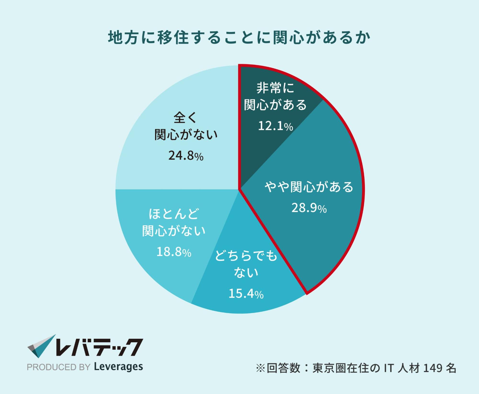 東京圏*1に住むIT人材の約4割が、地方*2に移住して働くことに「非常に関心がある(12.1%)」「やや関心がある(28.9%)」と回答しました。