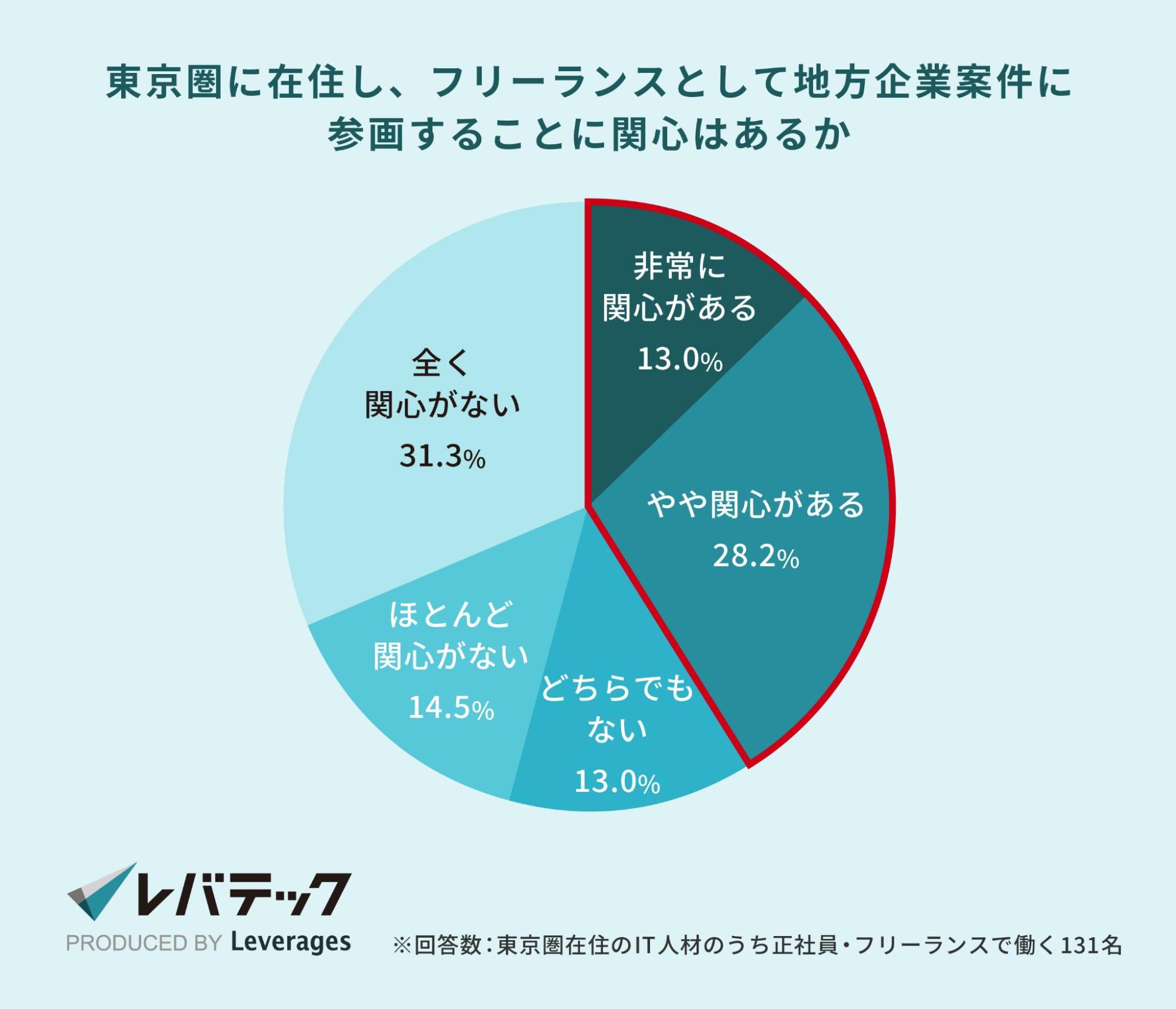 東京圏に住むIT人材の41.2%が、フリーランス*3として、地方企業の案件にリモートで携わることに「関心がある」と回答しました。