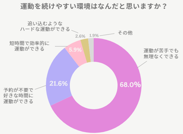 3. 68.0%が“運動を続やすい環境”は「運動が苦手でも、無理なくできること」と回答