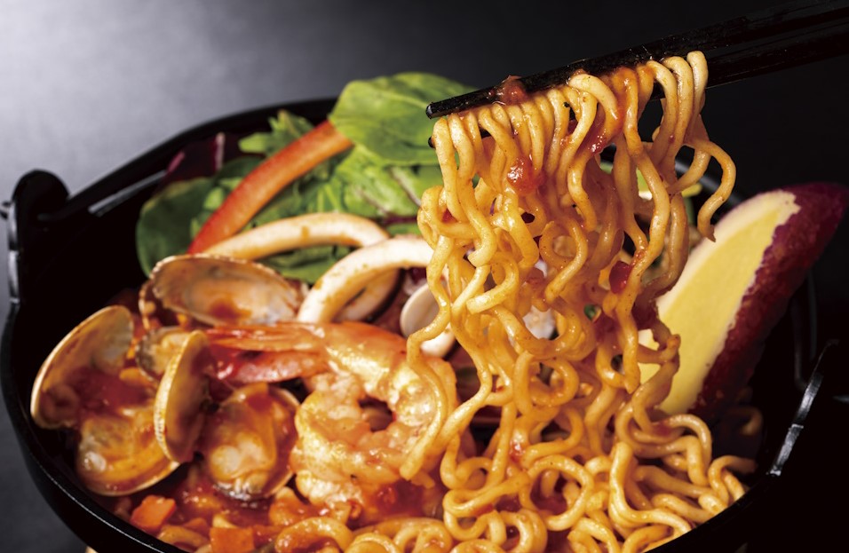 韓国でトレンド!SNSで大バズリのコラボメニューが登場予定。『太陽のヘムル“辛”トマト麺』とは一味違った「辛ラーメン×トマト麺」に、ぜひご期待ください。