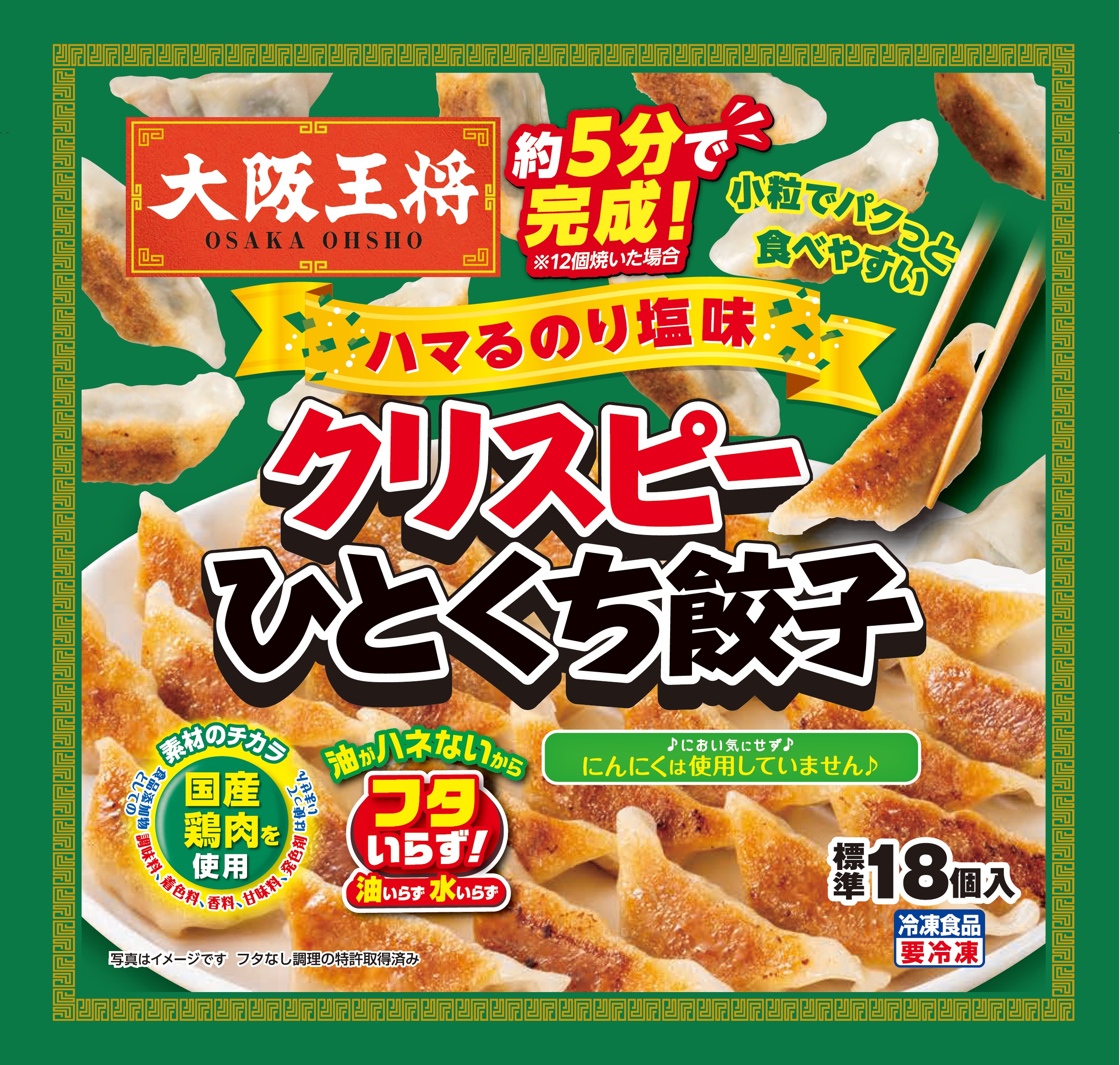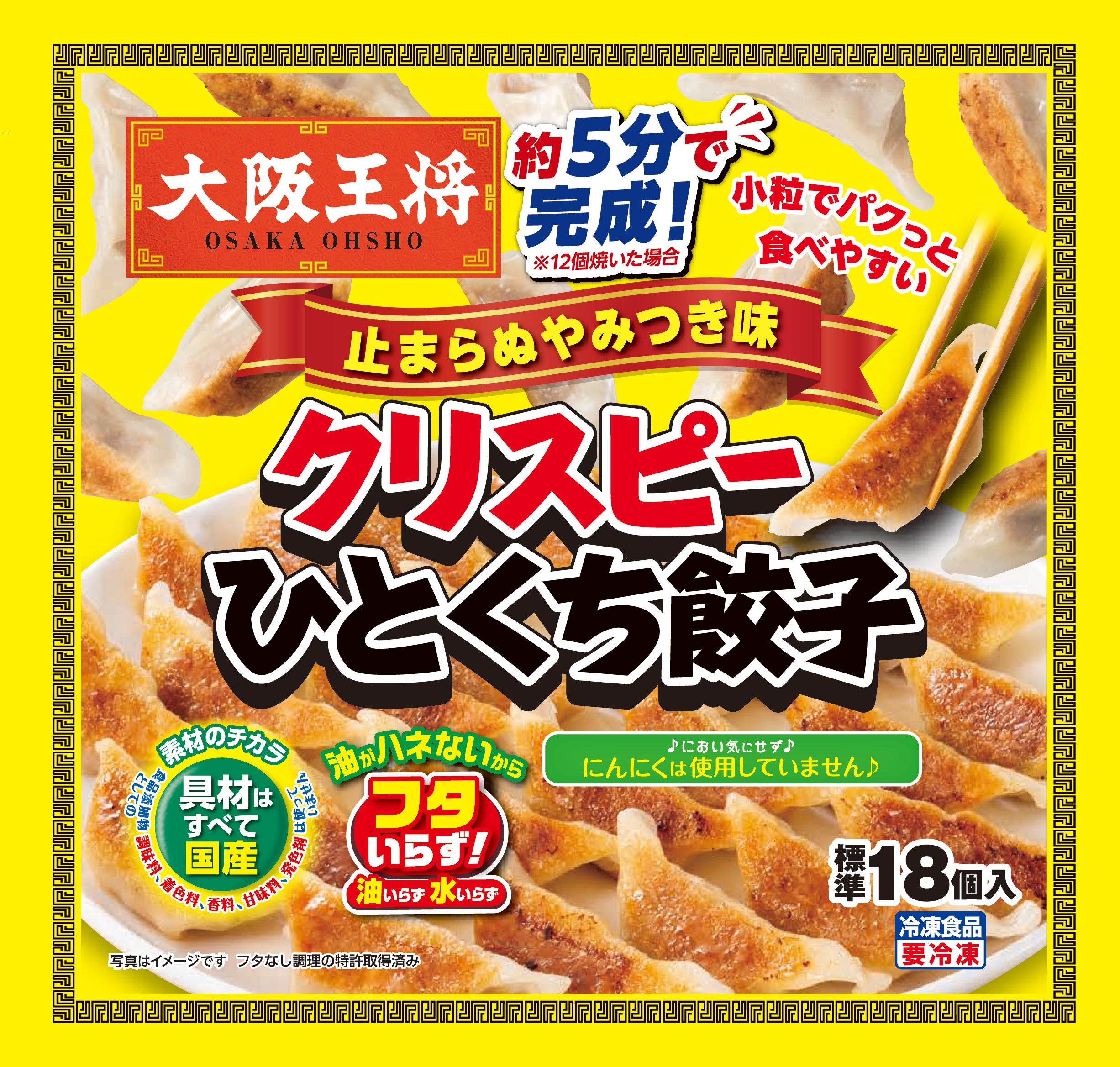 大阪王将冷凍餃子シリーズは、国産素材にこだわった具材の美味しさを、自家製の隠し味で引き立て、大阪王将の冷凍食品でしか味わえないコクと旨みが特徴です。さらに、凍ったまま調理可能で、油・水・フタいらず!という便利さも兼ね備えています。まさに、手軽でタイパ、おいしさを満たす商品です。2025年春夏は、より肉感を楽しんでいただけるようにリニューアル。また、自家製の隠し味である焦がし味噌に中華スパイス・チューニャンを追加し、さらに食欲をそそる旨み、おろししょうがをアップして、すっきりとした香りに仕上げています。よりおいしく!より便利に!を突き詰めて進化をし続ける大阪王将自慢の冷凍餃子をお楽しみください。