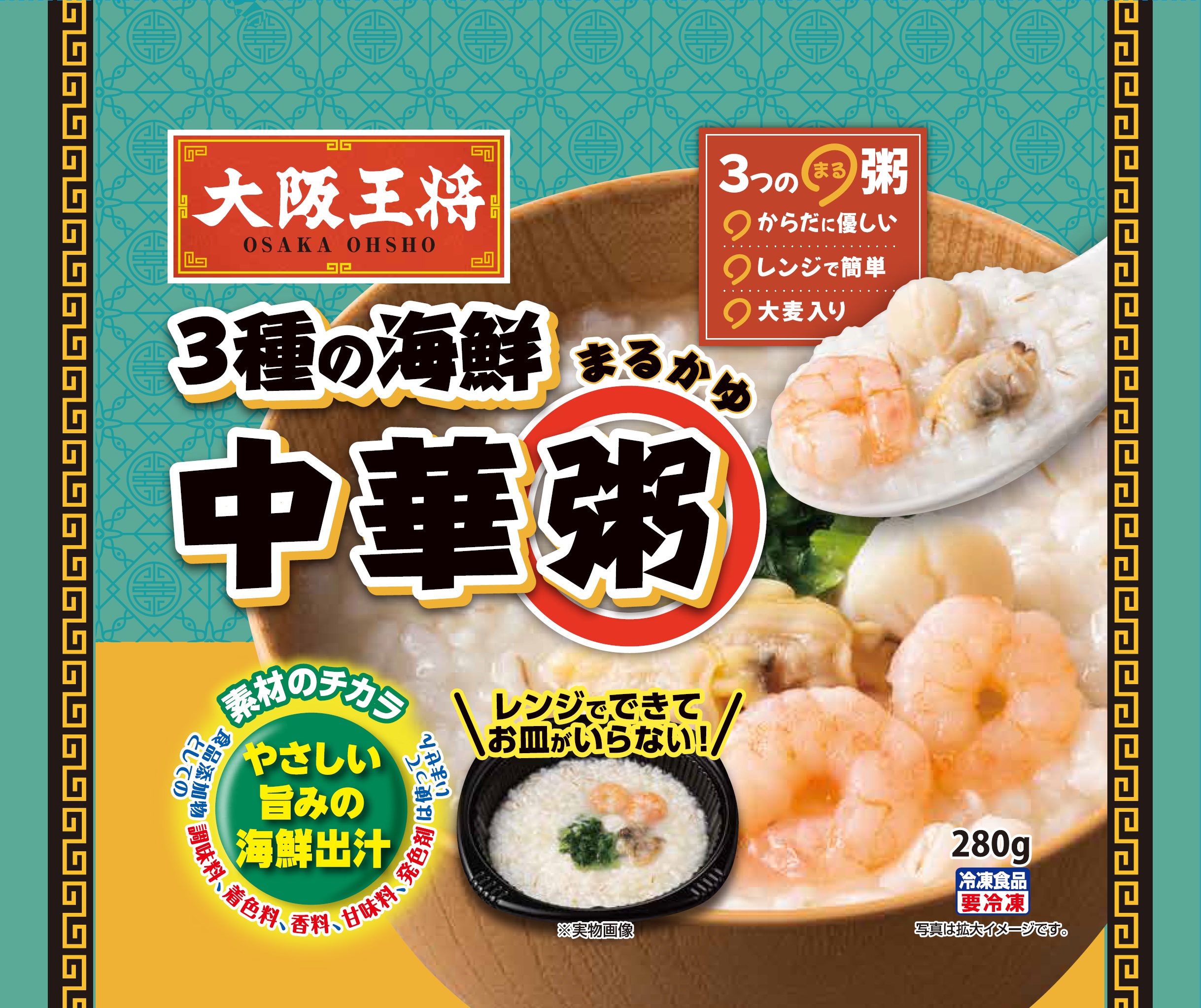 ワンプレート型冷凍食品「楽ラク中華シリーズ」とともに、体を気遣う新商品が『3種の海鮮中華粥』と『ムネチキタツタ』です。