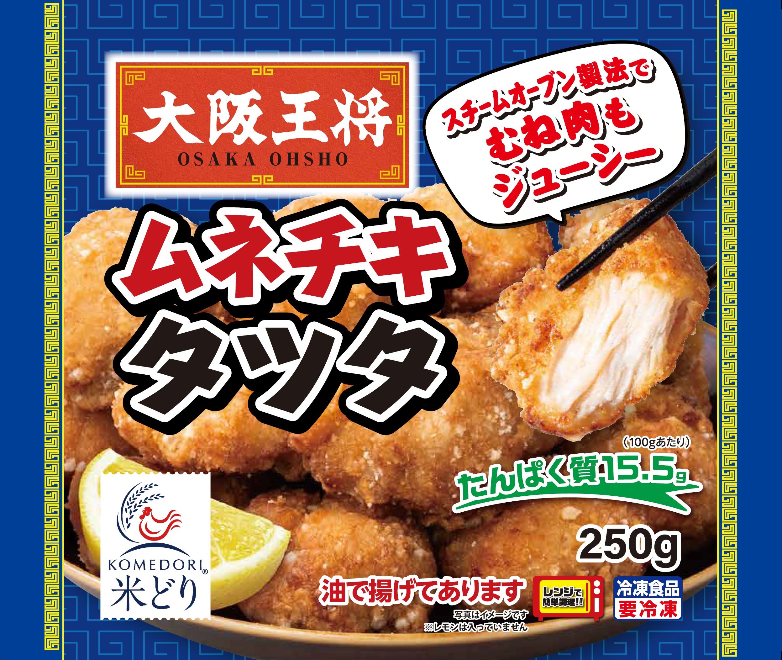 ブランド鶏「米どり」むねの一枚肉を使用。油で揚げた後、スチームオーブンで加熱することで、ふっくらジューシーに仕上げました。衣は油を吸いにくい配合で、一般的な竜田揚げよりヘルシーに。
