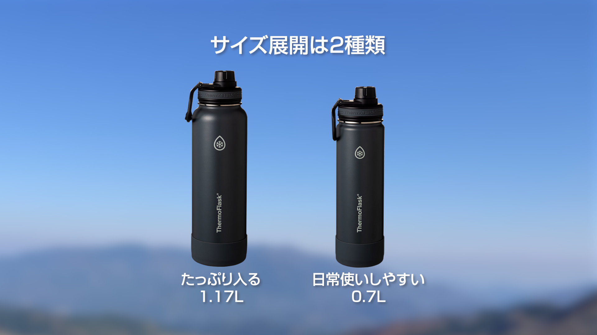 気温が低く、のどの渇きが分かりづらい冬は、水分補給をつい忘れがちです。しかし、冬は乾燥しているのでこまめな水分補給が大切です。0.7Lの普段使い用から、1.17Lと大容量のアウトドアやスポーツの場面でも活躍します。