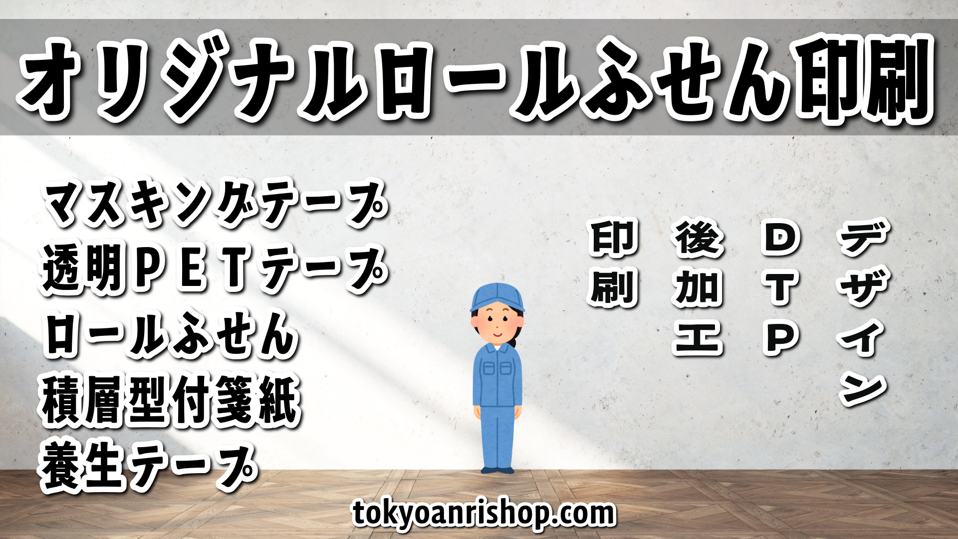 ステーショナリー制作なら tokyoanrishop.com へご相談ください。実店舗での対面相談可能(ロール付箋、マスキングテープ、透明PETテープ、養生テープ、積層型付箋のオリジナル印刷可能)