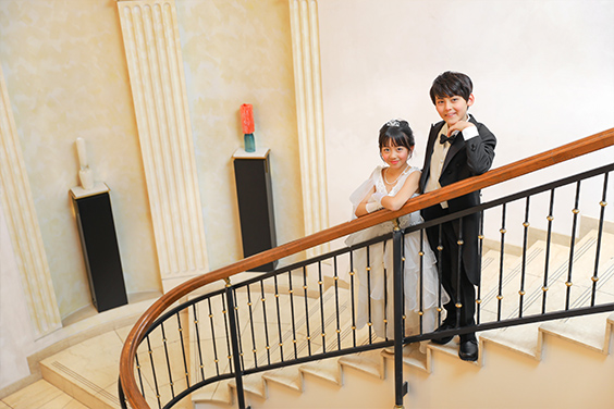 - ラグジュアリーなスタジオでの撮影: 大きなシャンデリアや豪華な大階段など豪華な空間でお子様の記念撮影ができます。