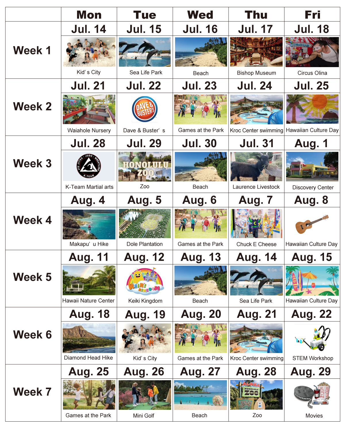 サマーキャンプ2025日程:2025年7月14日~8月29日