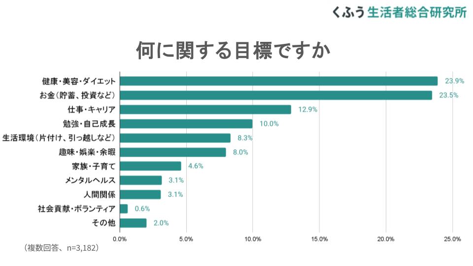 目標の内容は「健康・美容・ダイエット」が23.9%と最も多い結果となりました。