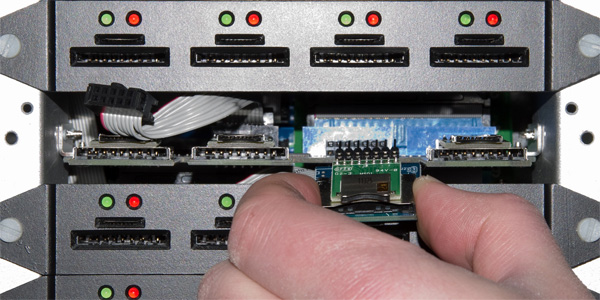 ● 個別のスロット故障が発生した場合に、修理に出さずにその場で対応ができる「クイックソケットスワップモジュール」を採用しています。