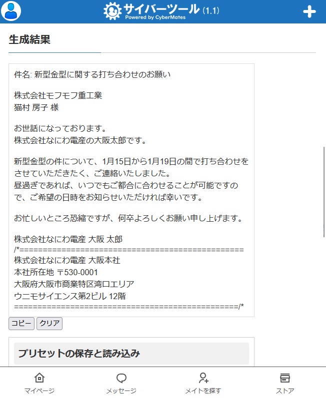 日本語の文法やメールマナーを踏まえた、自然で読みやすいメールを生成します。
