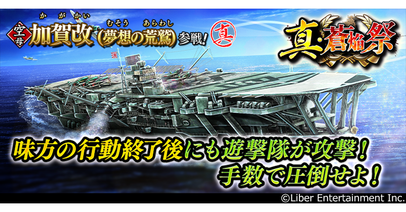 株式会社リベル・エンタテインメントが運営する本格海戦ゲーム『蒼焔の艦隊』(そうえんのかんたい、iOS/Android/DMM Games)は、2025年1月24日(金)よりサルベージ「真・蒼焔祭」を開催し、新たに空母「加賀改(夢想の荒鷲)」が参戦することをお知らせいたします。