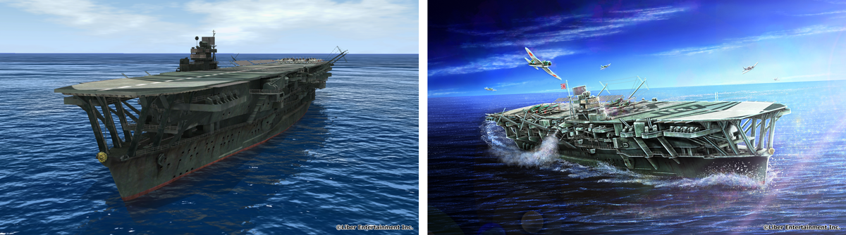 ▲空母「加賀改(夢想の荒鷲)」 左:スクリーンショット 右:イメージイラスト