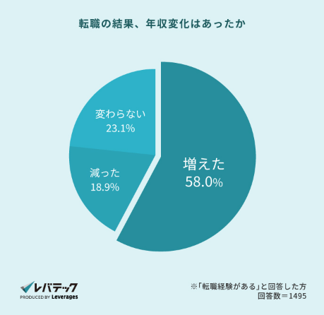 - 約6割の転職経験者が年収アップを実現、4人に1人は100万円以上の増額も
