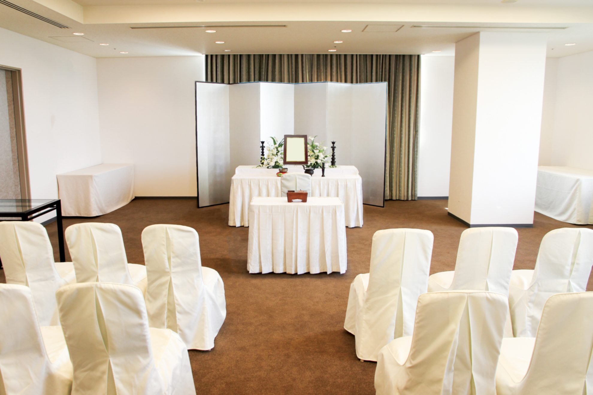 シンプルで落ち着いた雰囲気の専用会場では宗派を問わず法要式を執り行っていいただけます。お線香、お焼香の使用も可能です。