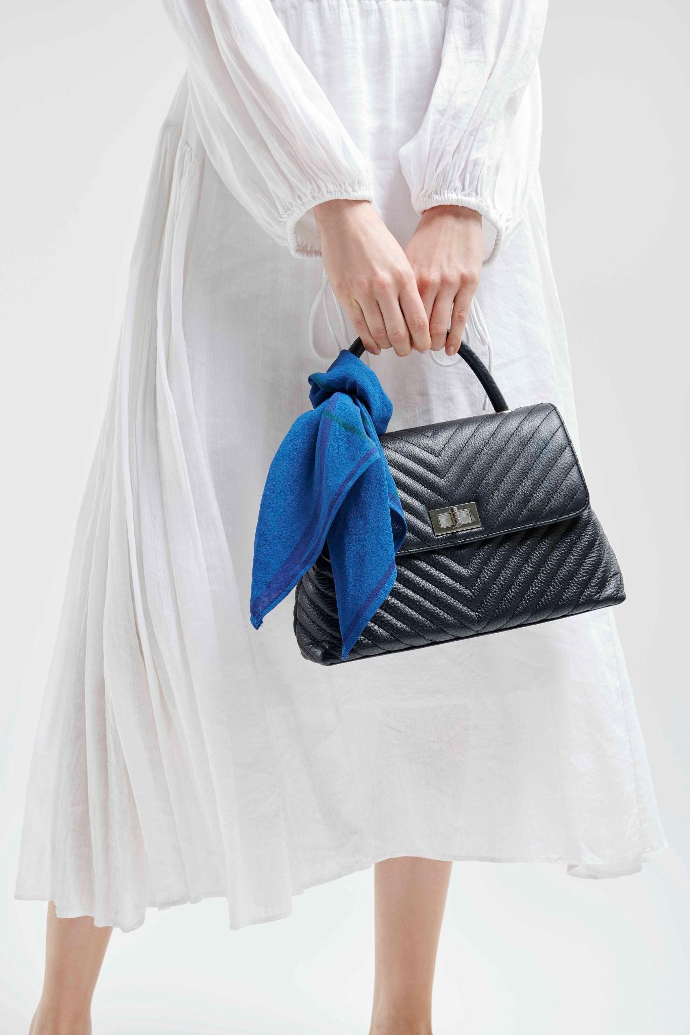 「纏うハンカチ」を身にまとうことで、ファッションを楽しみながら環境について考えるきっかけを提供しています。