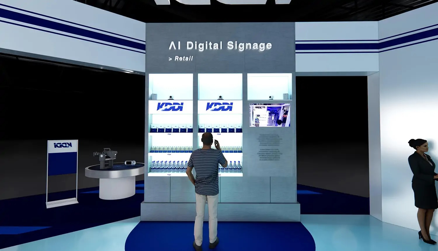 当社が技術協力した「AIデジタルサイネージ」の展示イメージ