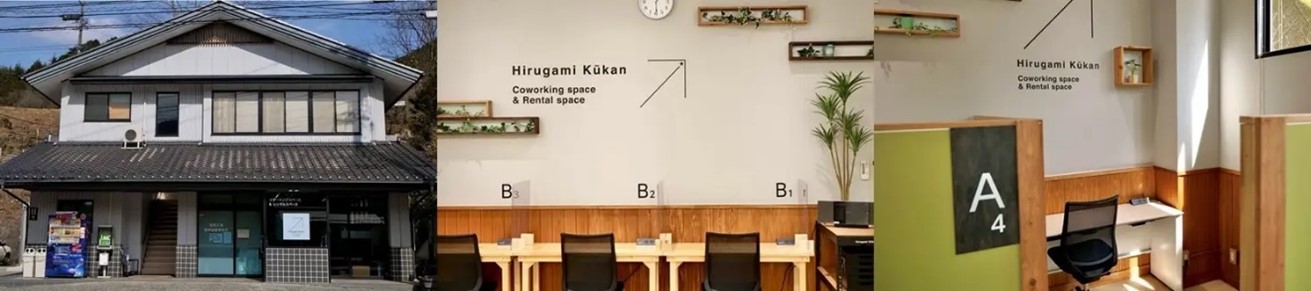 レンタルスペース「昼神空間」は、南信州最大の温泉郷昼神温泉の入り口に位置する多目的レンタルスペースで、温泉宿から近く長期滞在での利用も可能です。テレワーク、グループワークの場所として、商談、展示、販売、イベント、セミナー会場として、ほかにも本を読んだり、動画を見たりと様々な用途に利用できます。