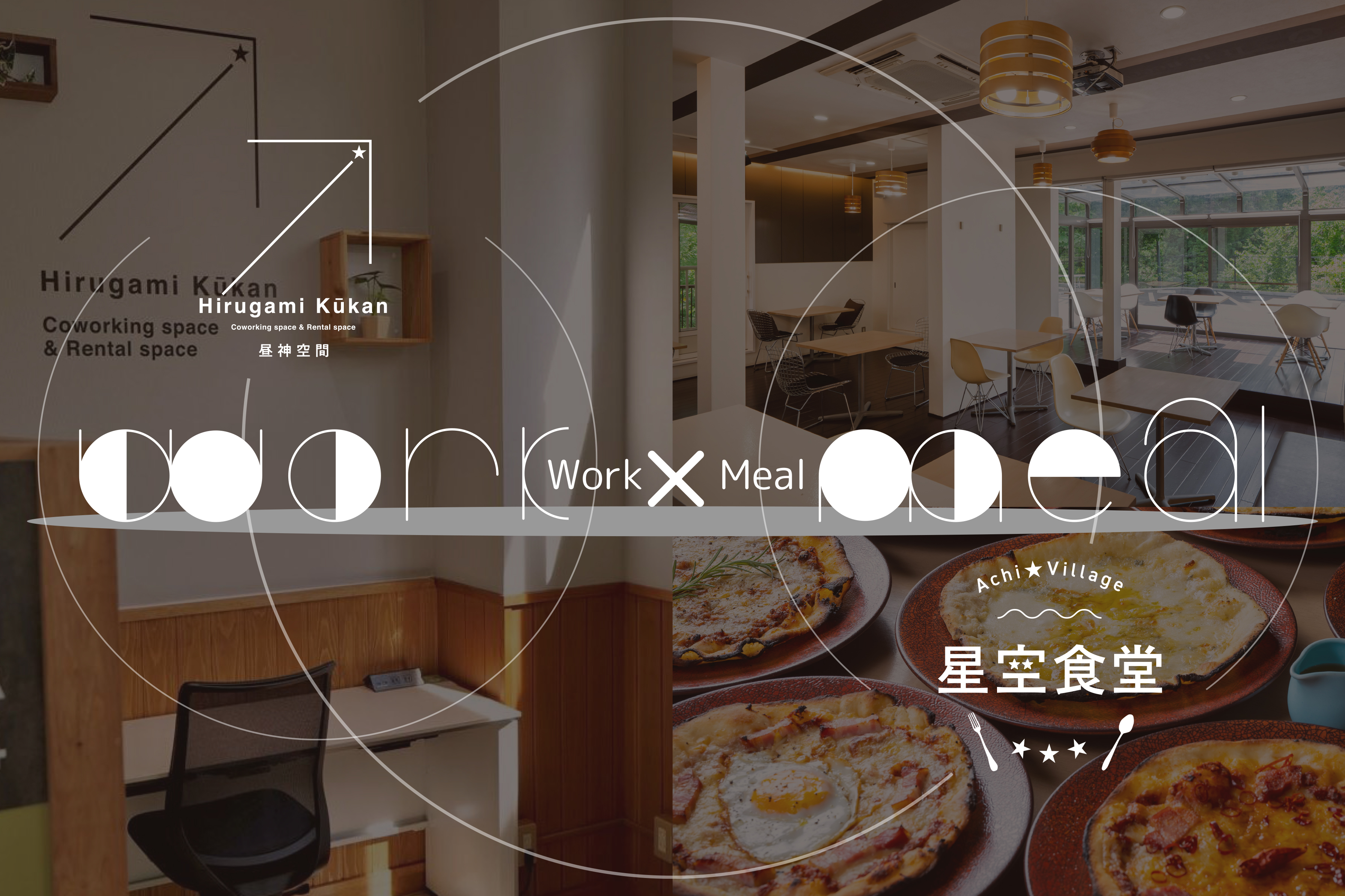 このたび、レンタルスペース昼神空間の半日利用(通常500円)と、徒歩でも移動可能距離にある阿智村を中心とした地元食材にこだわる阿智村 星空食堂の食事券1,000円分がセットになった「Work&Mealプラン」を販売いたします。