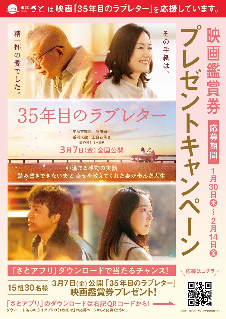 【和食さと】公式「さとアプリ」をダウンロードで、映画『35年目のラブレター』の映画鑑賞券を抽選でプレゼント!!!