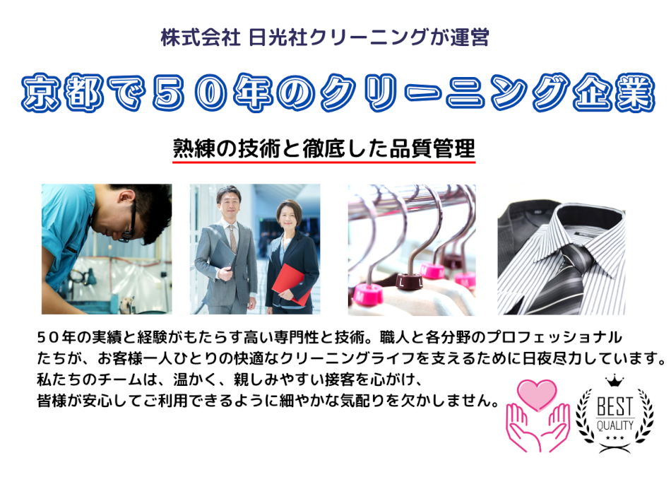 厚生労働省 京都府クリーニング取次店認可取得の直営工場で熟練の職人が