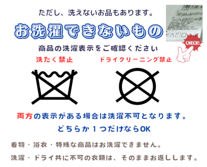 ◆一部、特殊品(着物、浴衣、弊社で洗えないもの)は洗えません...。