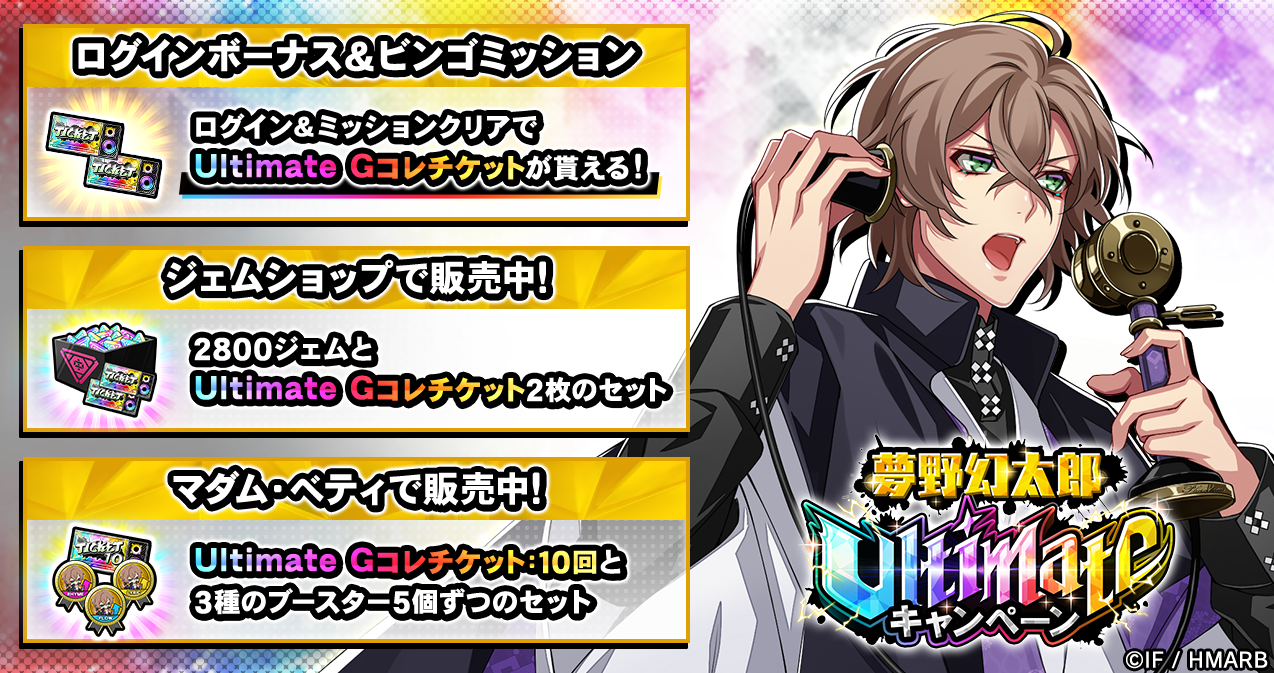 Ultimateカード「SSR【EDGEOUT】夢野幻太郎」を獲得することができるGコレクトや、ビンゴミッション・ログインボーナスを開催しています。