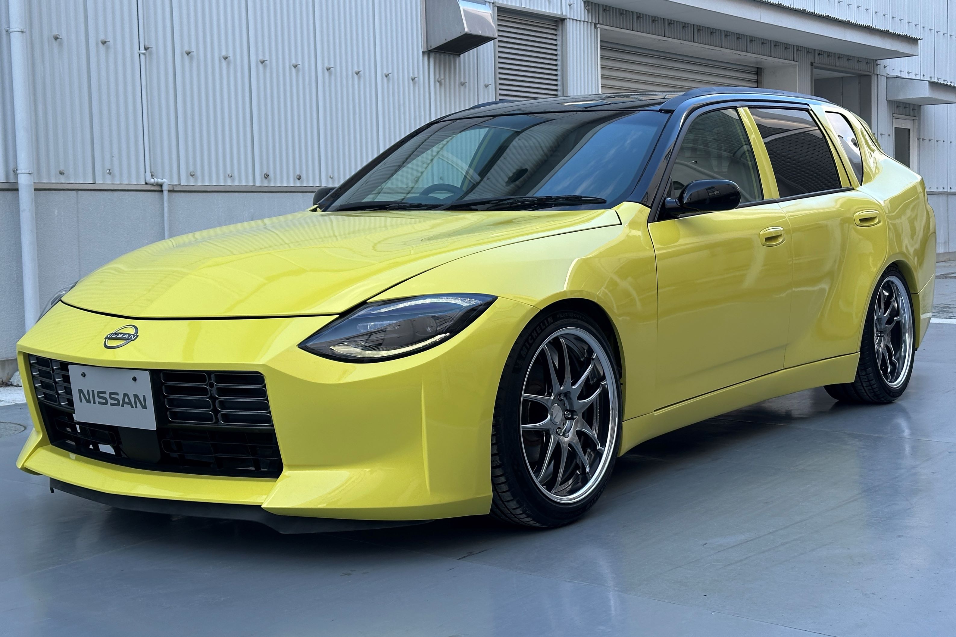 ベース車両はM35型ステージアですが、同車が持つスクエアなデザインを一新しています。最新のRZ34型フェアレディZのような流麗なデザインを実現するために、リア周りはフェンダーやルーフを一部切断し、日産リーフのリア部分を丸ごと取り付けて溶接しました。さらにリアフェンダーをワイド化することで、フェアレディZらしい筋肉質で迫力のあるリアフェンダーを再現しています。