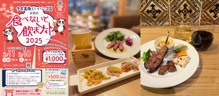 食べないと飲まナイト実行委員会は、今年も東京の上野・湯島で「食べないと飲まナイト」16回目を2025年2月11日(火・祝)と2月18日(火)に開催いたします。食材費をはじめ幅広い分野で値上げが続いているにも関わらず、全店舗(※1)にておすすめ料理とドリンクのセットをたったの1,000円で楽しめる、太っ腹なイベントを開催。今年は26店(※2)が一致団結し、1,000円の価格をすえおきのまま、街の活性化のために赤字覚悟で参加します。テレビ番組の大河ドラマ「べらぼう~蔦重栄華乃夢噺~」でもいま話題の台東区、同時期に近隣では湯島天神梅まつりも開催中です。ぜひこの機会に下町の気になるお店をたくさんハシゴしてお楽しみください。 (※1:一部の店は飲食店以外、物販などになります ※2:2月11日のみ参加店は19店になります)