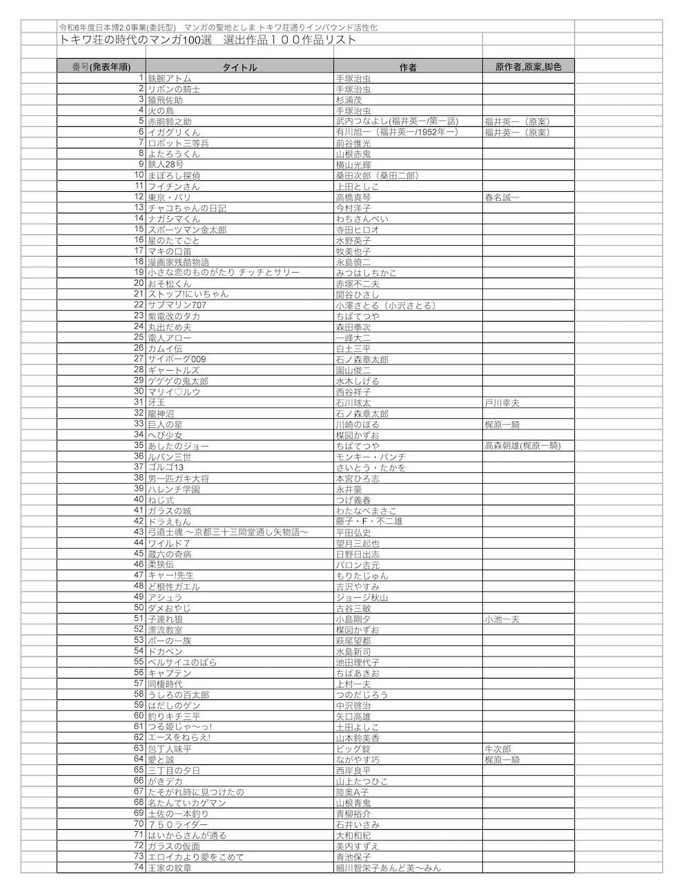 日本博2.0事業 「トキワ荘の時代のマンガ100選」 1月31日発表!