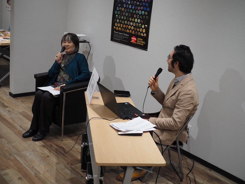 イベントでは主催代表であるレインボーバード合同会社代表・山内康裕によるプロジェクトについての説明、選考委員長・里中満智子氏によるお話 、山内より里中氏へ質問形式の対談などが行われました。