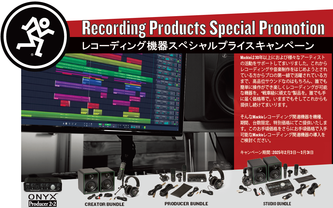 Mackie レコーディング関連機器スペシャルプライスキャンペーン