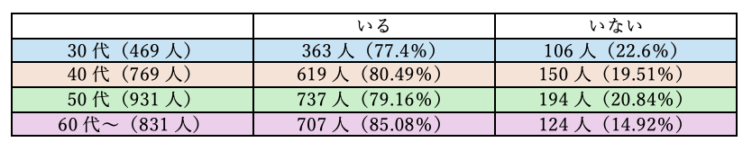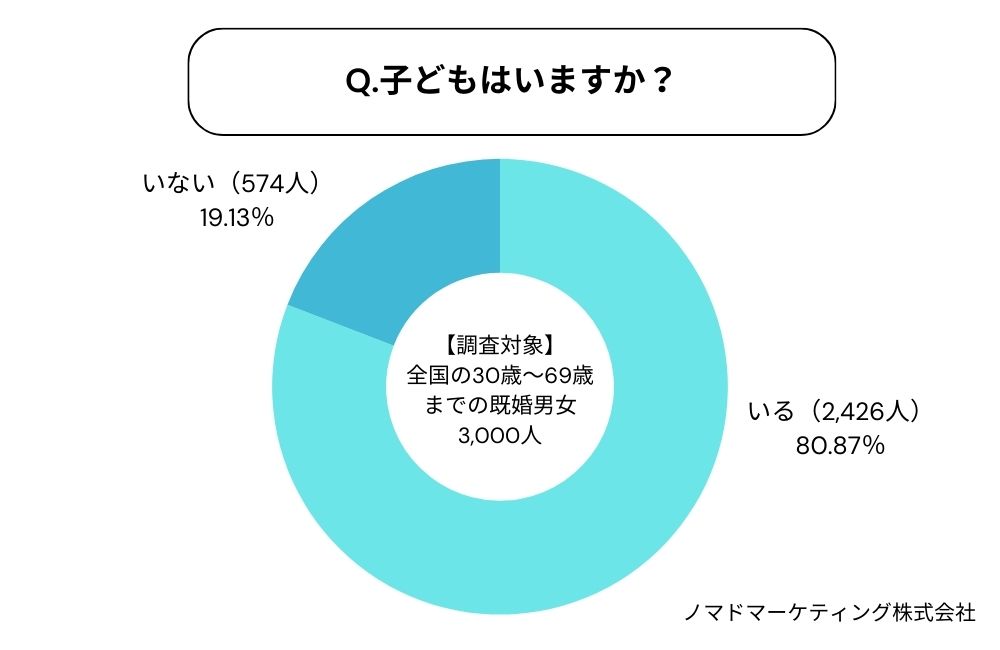 今回の3,000人アンケート調査では、8割の人が「子どもがいる」と回答しています。