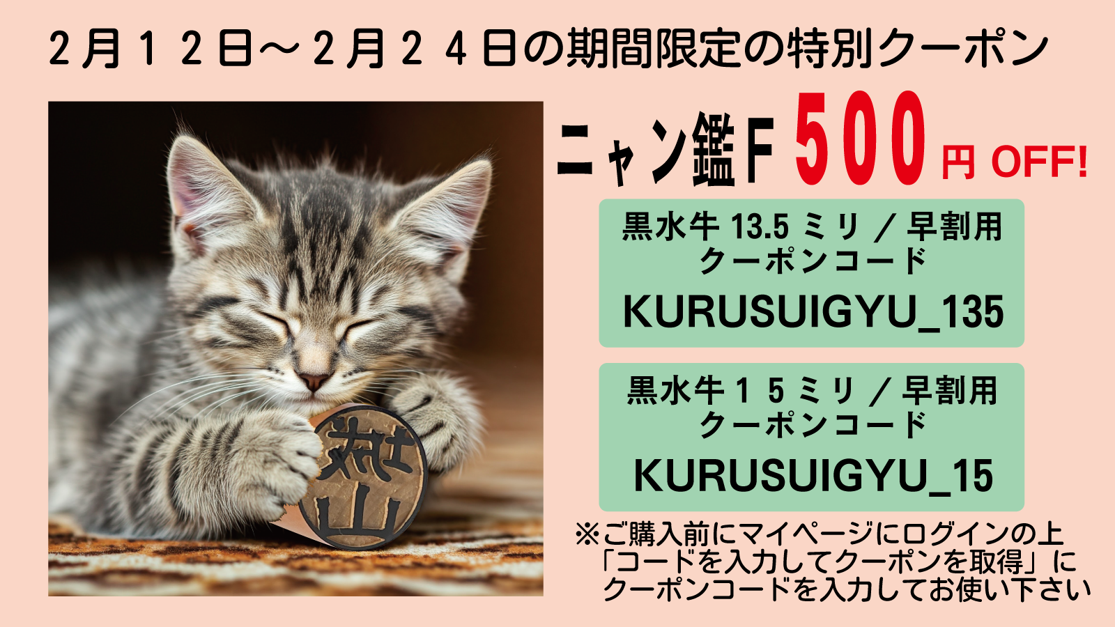 2)黒水牛15ミリ[早割] クーポンコード KUROSUIGYU_15