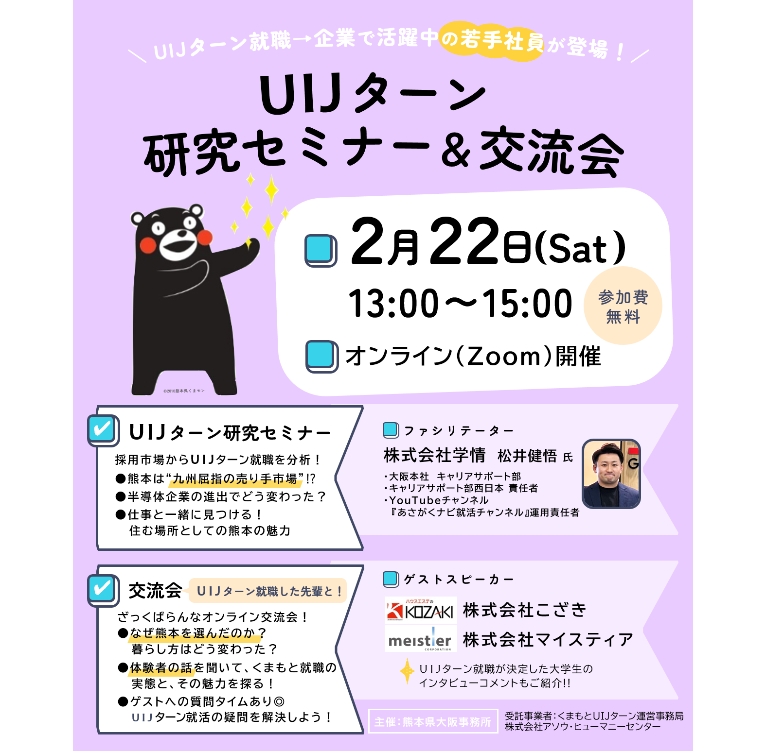 2/22(土)Zoom開催◆体験者に聞こう!『UIJターン研究セミナー&交流会』UIJターン就職した若手社員とのオンライン交流