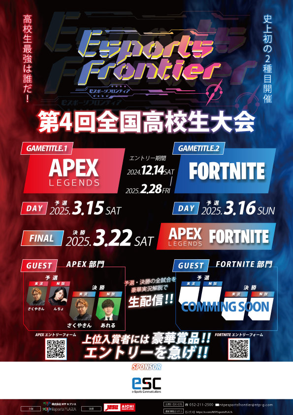 NTP Esports PLAZA presents 第4回 Esports Frontier 全国高校生大会 【APEX部門】実況、解説決定のお知らせ