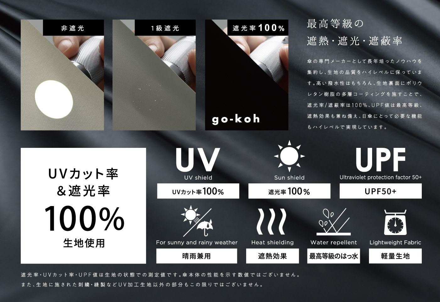日傘としても雨傘としても自社最高級の品質を誇る「go-koh」による5つの驚きを、ぜひご体感ください。