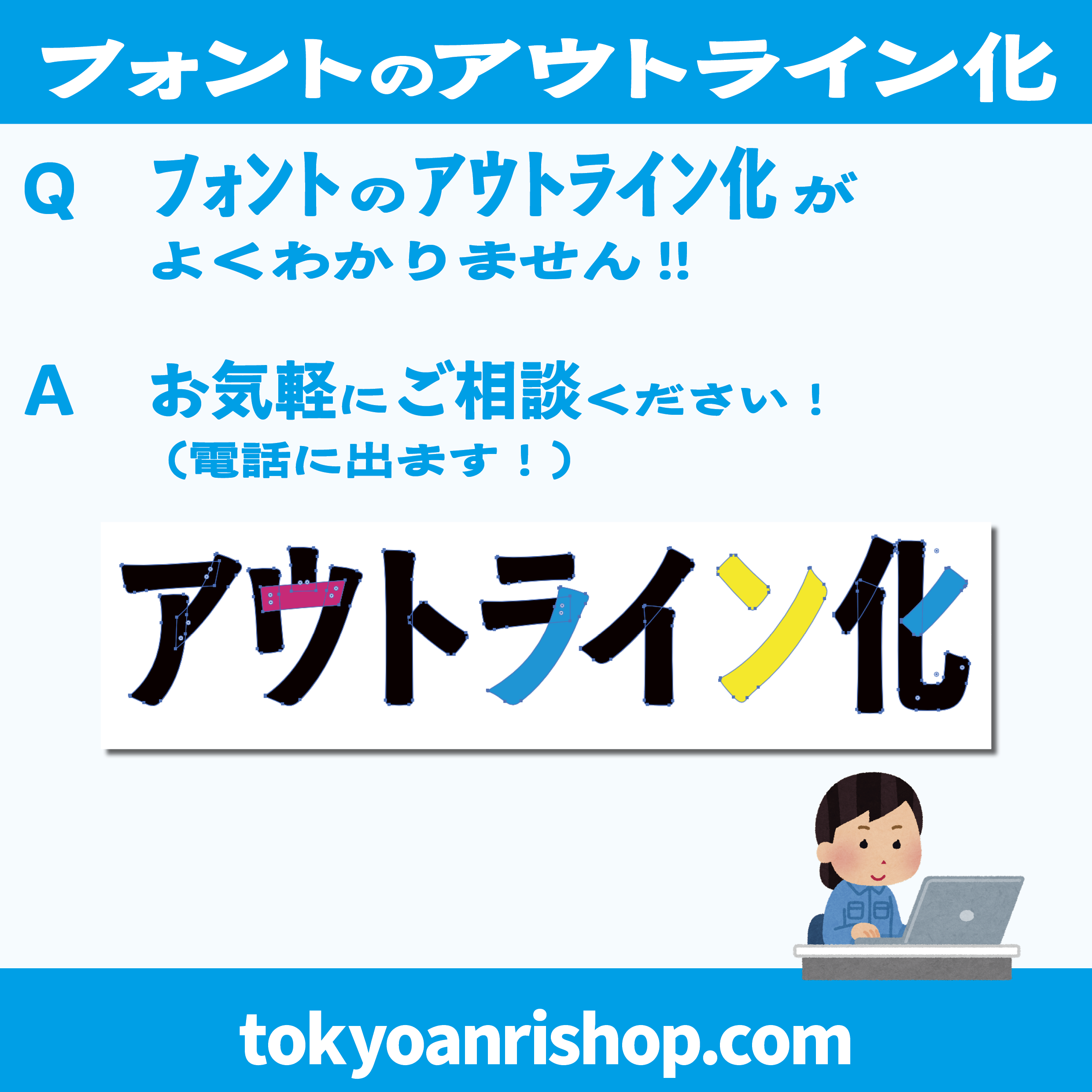 【Q】フォントのアウトライン化、わかりません! 【A】お気軽にお電話ください!