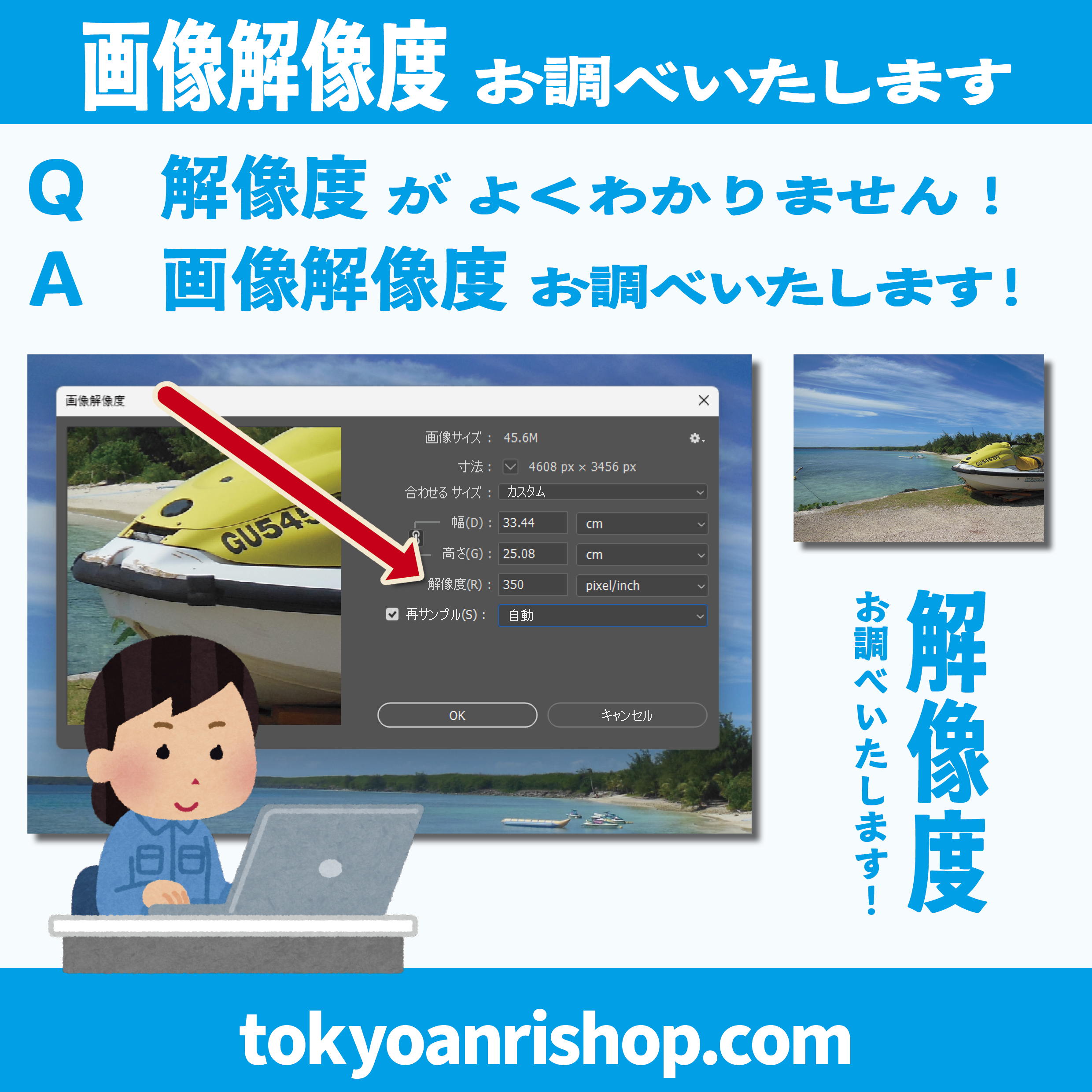 【Q】写真の大きさ(解像度)大丈夫ですか? 【A】画像解像度お調べいたします!